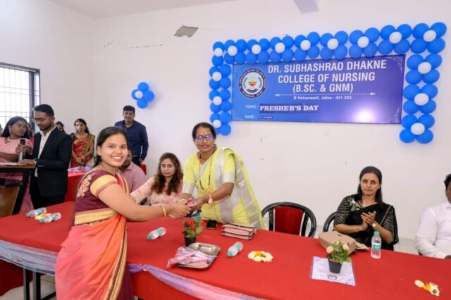 The Fresherโs Day celebration at Dr. Subhashrao Dhakne College of Nursing was a vibrant and memorable occasion organized to welcome the new batch of B.Sc. Nursing and GNM students with warmth and enthusiasm.
