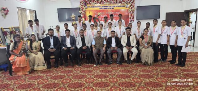 The Lamp Lighting & Oath Taking Ceremony for the B.Sc Nursing and GNM students (2024โ2025 batch) of Dr. Subhashrao Dhakne College of Nursing, Jalna will be held on Friday, 4th April 2025 at 11:00 AM in the Multipurpose Hall.