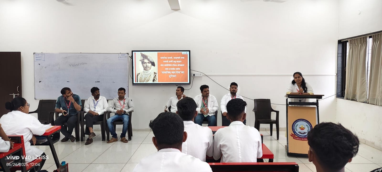 Dr. Subhashrao Dhakne College of Nursing proudly celebrated Chhatrapati Shahu Maharaj Jayanti with great respect and enthusiasm. The program began with a floral tribute and inspiring speeches highlighting Shahu Maharajโs contribution to social justice and education.