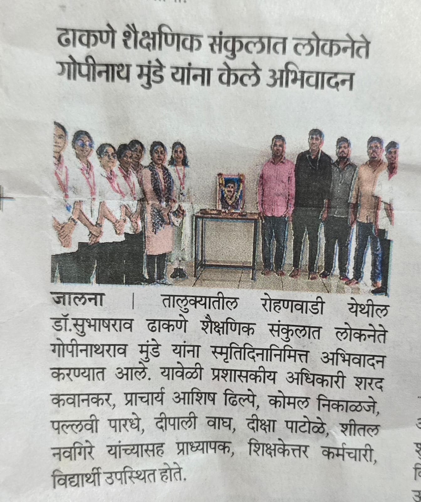 Dr. Subhashrao Dhakne College of Nursing observed Gopinath Mundhe Jayanti with deep respect and admiration. Students and faculty paid tribute to the late leader known for his dedication to public service and rural development