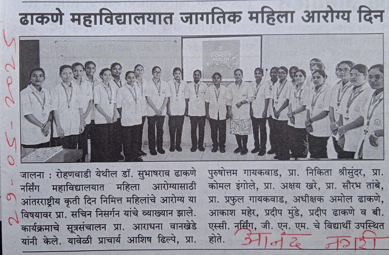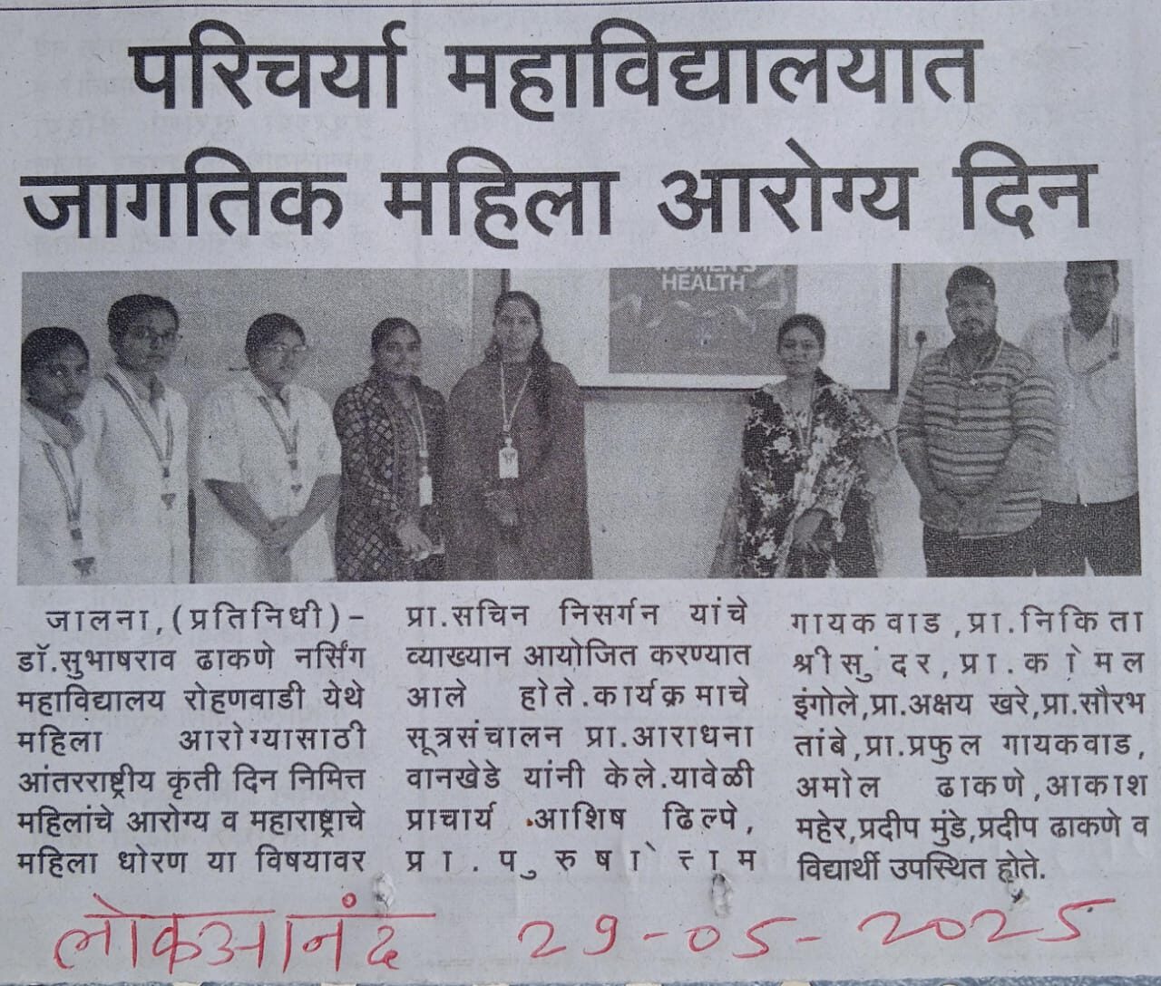 Dr. Subhashrao Dhakne College of Nursing celebrated International Womenโs Health Day to highlight the importance of womenโs physical and mental well-being.