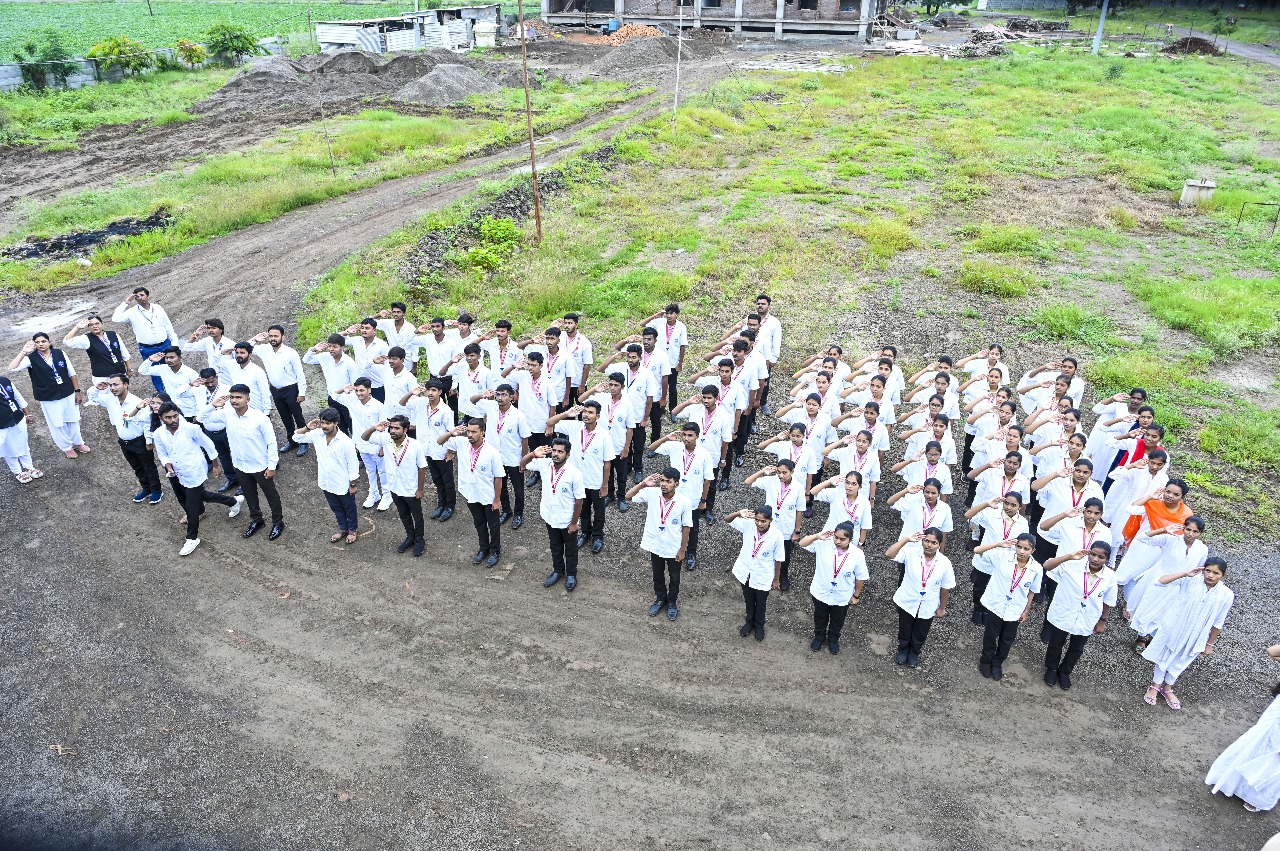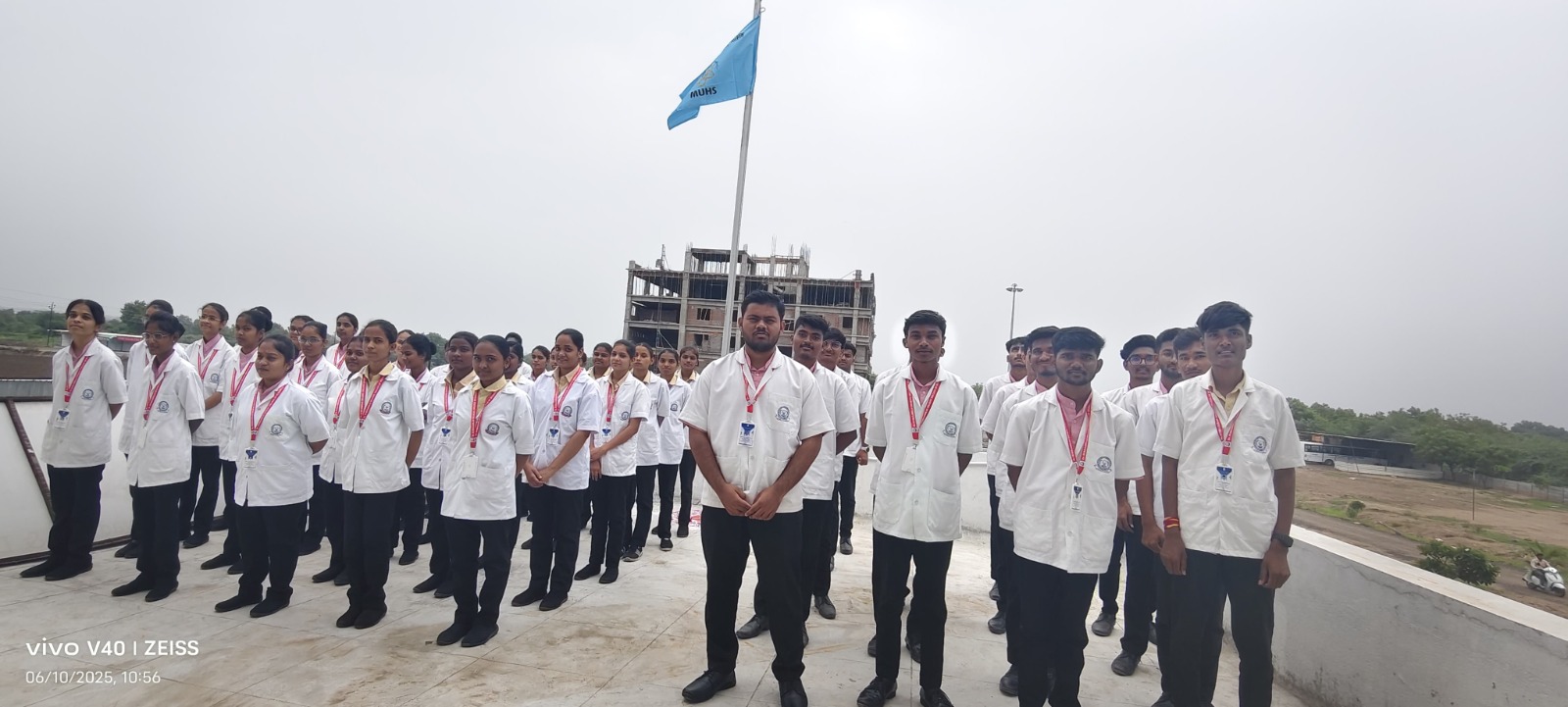 Dr. Subhashrao Dhakne College of Nursing , Rohnawadi, Jalna, celebrated the 79th Independence Day with great enthusiasm. The program began with the flag-hoisting ceremony by Smt. Shilatai Khedekar , Secretary of the institution. The event was graced by Smt. Sushma Rajmane (Chairperson, Local Governing Committee) and Shri Ankush Ganjakar (Member, Local Governing Committee) as special guests.